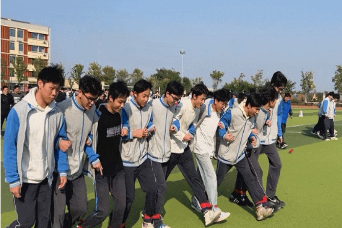 赛事角逐即刻展开,赛场内外涌动着奋进力量。全校各班学子率先投身 “十人十一足” 比赛,绑紧的绳索将彼此的脚步相连,“一二、一二” 的统一口号中,他们步履同频、互助前行,跌倒时的搀扶与冲线时的欢呼,生动诠释了 “团结就是力量”的深刻内涵。