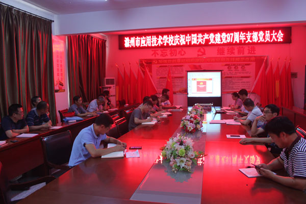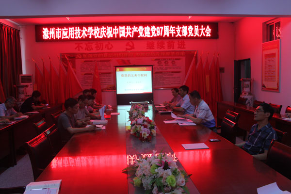 为了庆祝中国共产党成立97周年,2018年7月2日下午,滁州市应用技术学校召开了庆祝中国共产党建党97周年支部党员大会。