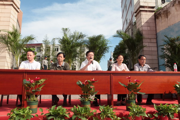 下午2点,伴随着激昂的《运动员进行曲》,国旗队、校旗队、60人组成的彩旗队、裁判员代表方队迈着整齐的步伐走向主席台,紧随其后的是29个班级的运动员代表方队。入场仪式完毕后,全场起立,高唱中华人民共和国国歌。校长吴雪峰致开幕词,他介绍了学校近年来取得的进步与成就,希望全体运动员、教练员、裁判员和工作人员,在大会组委会的统一领导和组织下,发扬“更高、更快、更强”的体育精神,赛出风格、赛出水平、赛出友谊。裁判员代表肖启艳老师与运动员代表陈燕妮同学上台宣誓。吴雪峰校长宣布本届秋季运动会开幕。