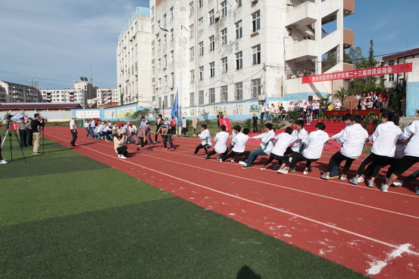 开幕式后,进行了运动会表演项目。健美操、古典舞、跑操、教职工联队与高三学生联队举行的拔河比赛,四个学部的4×100米接力赛,精彩纷呈,充满了活力与趣味,展现了职教师生激情四射的精神面貌。