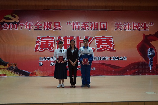 经过学校初选,来自全县五所高中的11名选手参加了本次比赛,选手们的生动演讲赢得了现场观众的阵阵掌声,他们用自己的亲生经历和深刻体会表达了对祖国,对社会的感恩,体现出当代青年报效祖国、甘于奉献的精神风貌。经过激烈的角逐,最终全椒中学石学成,滁州市应用技术学校陈燕妮同学获得一等奖,并将代表全椒县参加滁州市演讲比赛。