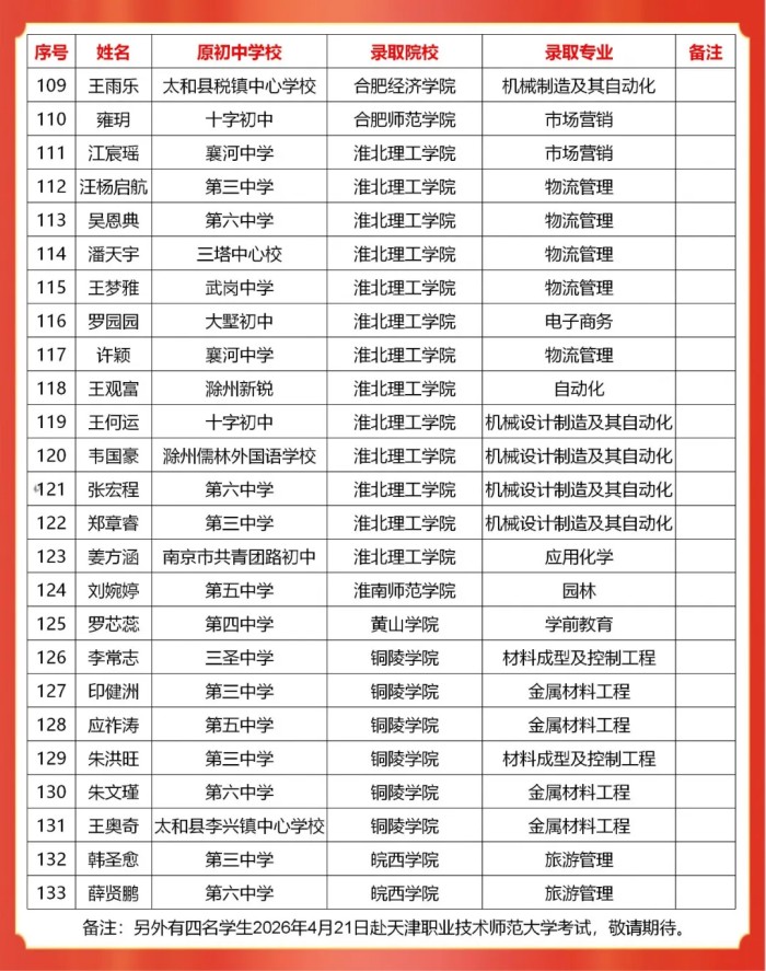 捷报频传添锦色,职教逐梦绽芳华!在各级领导关怀、社会各界支持及全体师生奋力拼搏下,滁州市应用技术学校2026年对口高考再创佳绩,本科录取人数达133人,创历史最好成绩,以亮眼答卷书写职教育人新辉煌!
